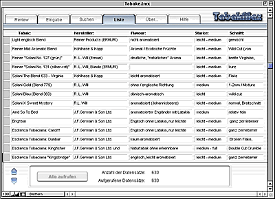 Hier ist also die erste öffentliche Version von TabakMax. Es handelt sich hierbei um eine Datenbank, in der Sie Beschreibungen zu Pfeifentabaken archivieren oder selbst erstellen können.